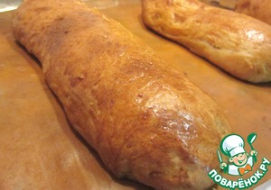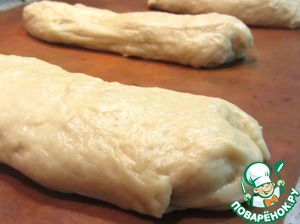 Готовое тесто разделить на 2-3 части, сформировать батоны. Выложить их на противень, дать подойти 30 минут. Смазать заготовки оставшимся яйцом.