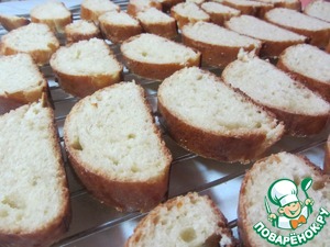 Заготовки полностью остудить и нарезать ломтиками примерно по 1 см толщиной.