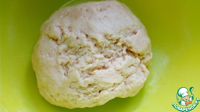 Получится вот такое плотное тесто. Накрыть его крышкой или полотенцем и оставить на 20-30 минут.