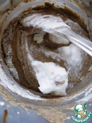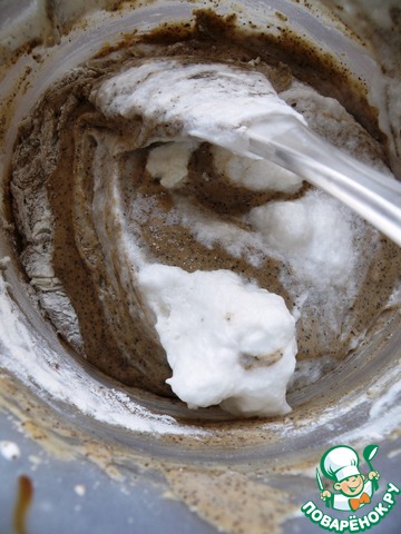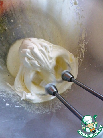 В три приема ввести взбитые белки, перемешивая методом сложения. |