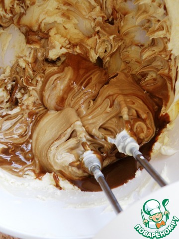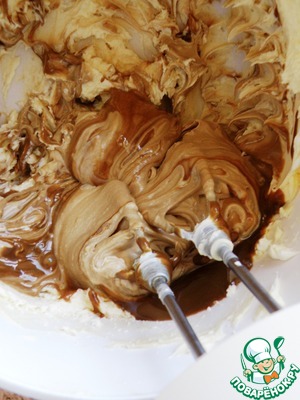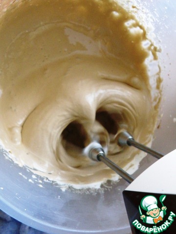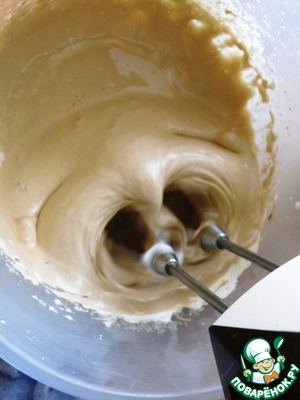 Добавить творожный сыр и еще раз взбить. Тонкой струйкой вливать сгущенный кофе и продолжать взбивать до однородности и пышности. Влить ложку ликера и еще раз взбить. |