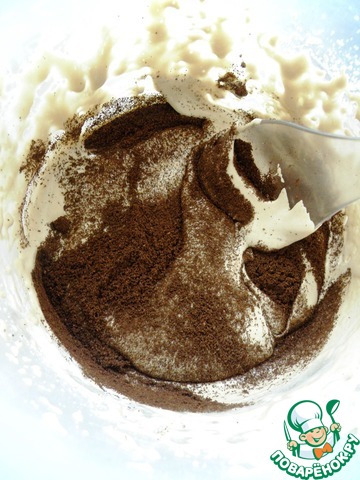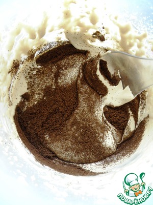 Просеять дважды муку с крахмалом и разрыхлителем. На малых оборотах вмешать в желтковую массу. Добавить кофе мелкого помола. Аккуратно перемешать. |