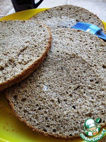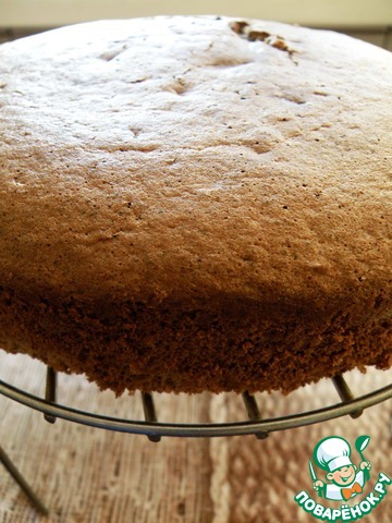 Печь минут 25-30, ориентируясь на вашу духовку, до румяной корочки и сухой лучинки. Готовый корж вынуть, подрезав края, и охладить на решетке. Затем накрыть крышкой и дать вызреть часов 5-6. |