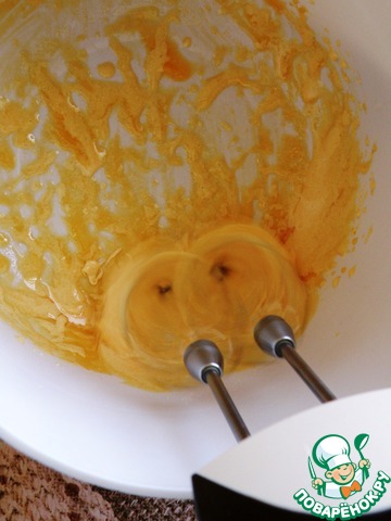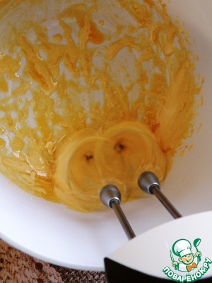 Желтки взбить с остатком сахара в пышный белый крем. |