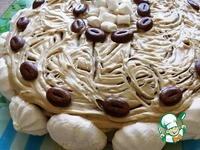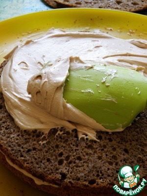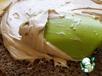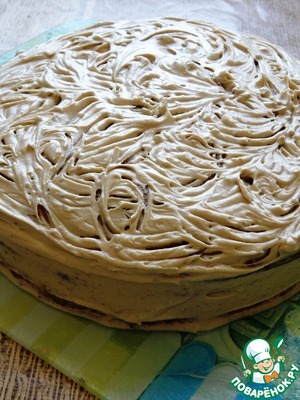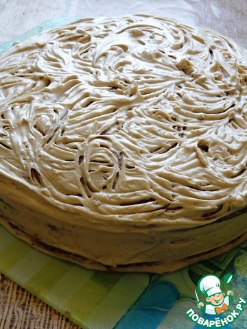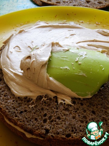 Для пропитки сварить крепкий кофе, охладить и смешать с ликером. Корж разрезать на три пласта и пропитать кофе. |