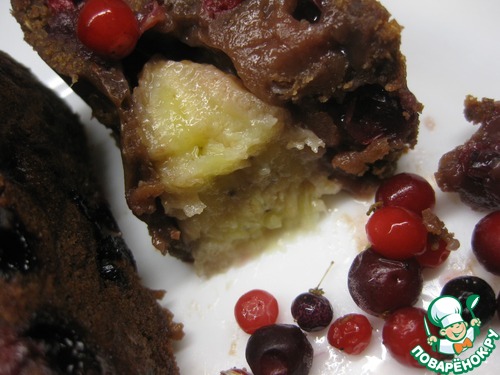 Рецепт «Шоколадный кекс с бананом и брусникой»: