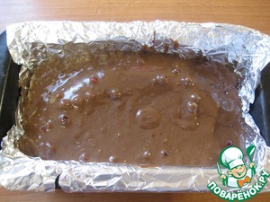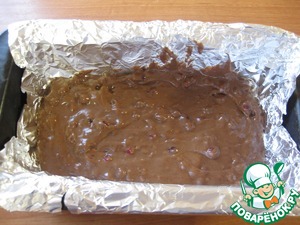 Берем прямоугольную форму для кексов, выстилаем фольгой или пергаментом (если форма силиконовая, то не нужно), выливаем половину теста