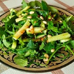 Очень давно хочу поделиться с вами рецептом этого салата. У нас на Дальнем Востоке он есть в меню во всех китайских общепитах. Семья моей сестры - большие его почитатели, заказывают постоянно. Долгое время она была в неведении и считала, что он реально из листиков одуванчика, пока я не открыла ей глаза, что это руккола. Готовится быстро. Мне он нравится тем, что полностью подходит по моей диете. Салат из разряда "минусовых калорий". Как говорится: больше тратится энергии на жевание, чем получаешь от него калорий.
