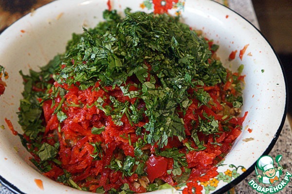 Все тщательно перемешать, отжать лишнюю жидкость.