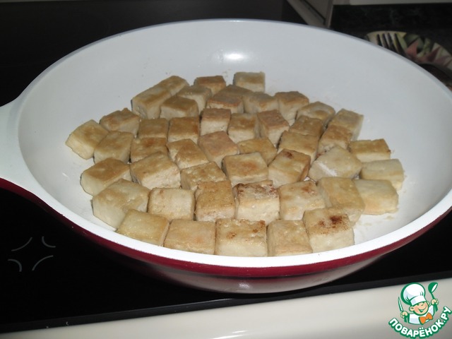 С сыра тофу слить рассол, обязательно просушить салфеткой или полотенцем,