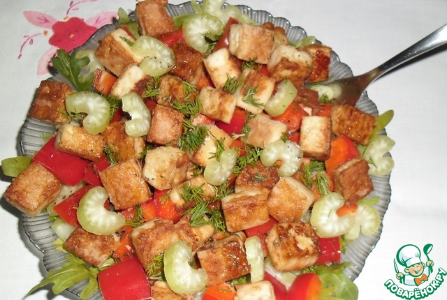 В Пост этот салат разнообразит наше меню, с жареным Тофу есть блюда на сайте, но я предлагаю Вам свой рецепт, т. к. в нём есть мои идеи.