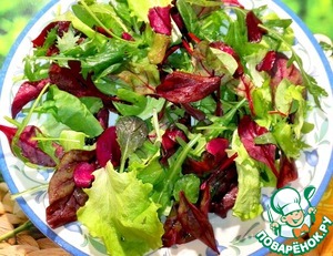 - Зелень (смесь листьев - свекла, руккола, шпинат, салат) — 100 г