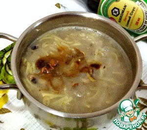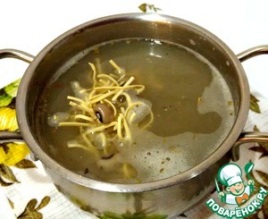 Добавить лапшу, специи и приправу по вкусу. На этом этапе добавьте натертую на средней терке морковь (у меня была уже отварная, поэтому добавляла в самом конце приготовления).