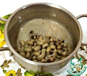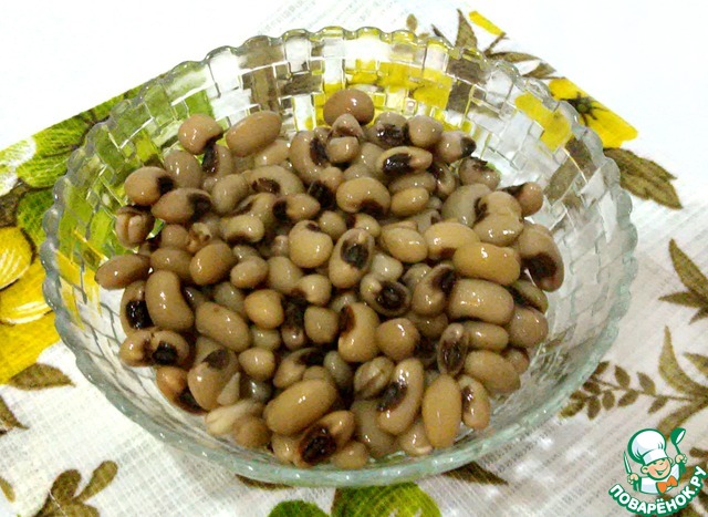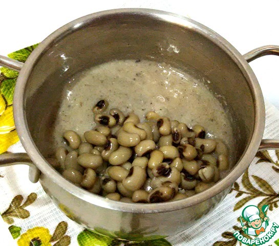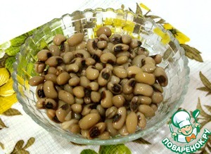 Подготовить фасоль. Я использовала белую (черноглазка). На ночь фасоль залить холодной водой и оставить в холодильнике. Утром воду слить, фасоль промыть и отварить до готовности. Солить по вкусу в конце приготовления. Фасоль промыть.