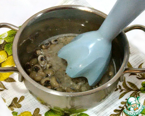 В емкости соединить 100г отварной фасоли, 50 мл воды и пюрировать блендером.