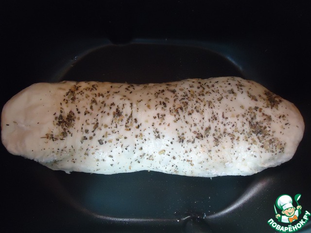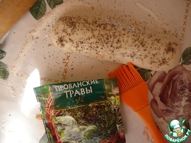 Посыпать сверху прованскими травами, они придадут шикарный аромат выпечке.
