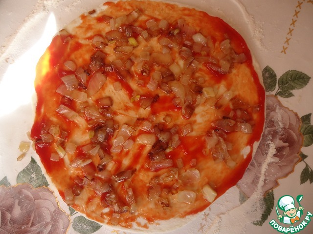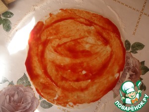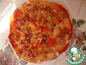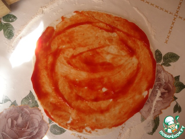 Смазать тесто кетчупом, выбранным по личному вкусу.