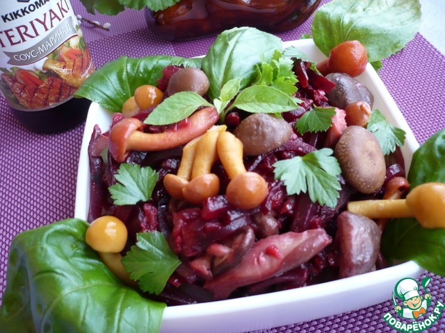 Ингредиенты для «Теплый салат из свеклы с грибами»: