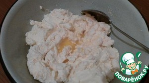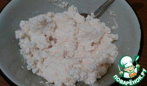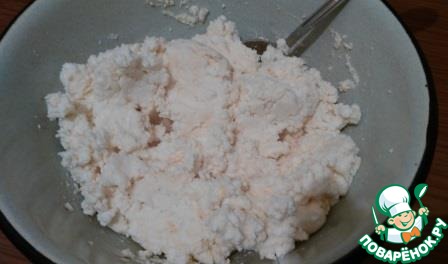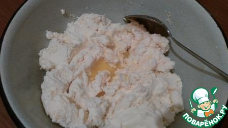 Добавить растопленное сливочное масло и опять все перемешать. Добавить рисовую муку и крахмал. Если у Вас сухой творог, то достаточно будет взять 1 ст. л. рисовой муки и 1 ч. л. крахмала. Все хорошо перемешать. А теперь возможны варианты.