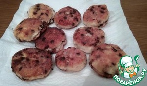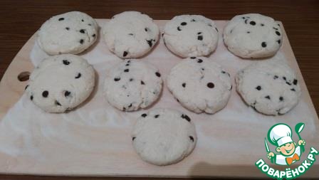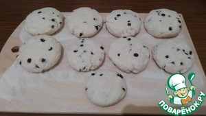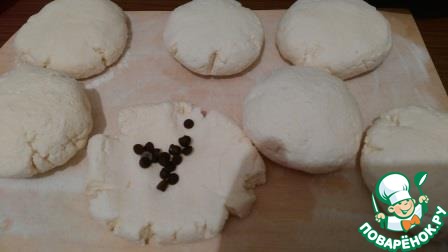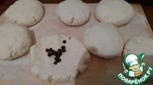 Вариант 1. Тесто разделить на шарики. Из каждого шарика сформировать лепешку, в центр положить немного шоколадных капель и опять сформировать шарик, который немного приплюснуть, чтобы получилась лепешка.
