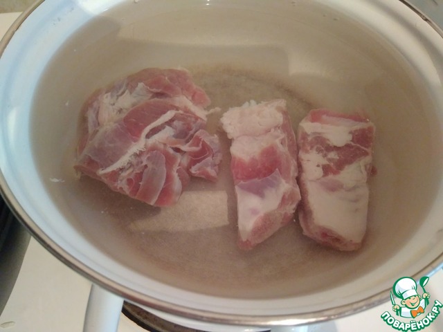 - Свинина (на кости и мякоть) — 350 г