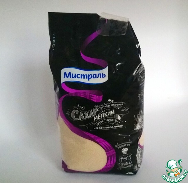 Сахар использовала мелкий тростниковый нерафинированный ТМ Мистраль. Этот сахар особенно рекомендуется для выпечки, так как наполняет изделия мягким карамельным вкусом.