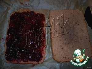 Одну половину обильно смазать конфитюром (у меня вишнёвый с персиком )и накрыть второй половинкой.