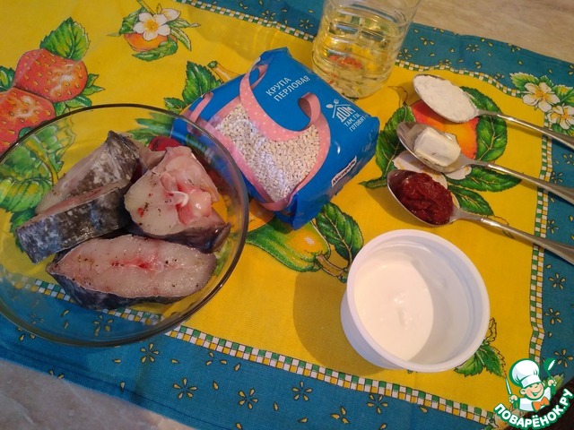 Ингредиенты для «Сом с перловкой и томатно-сметанным соусом»: