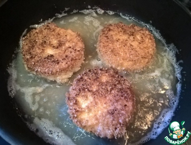 • Обжарить на растительном масле с двух сторон (масло побелеет)