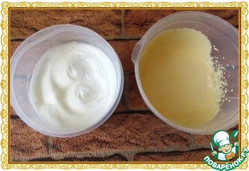 Желтки взбиваем с остальным сахаром по светлой пышной массы -