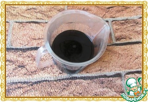 Отливаем 50 мл холодного сладкого кофе. Добавляем к нему алкоголь по желанию, - это пропитка коржей.