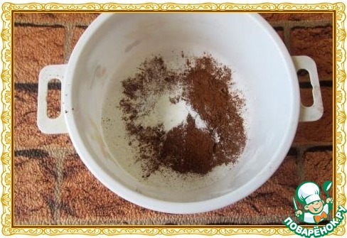 В отдельной посудине смешиваем крахмал, какао-порошок и разрыхлитель теста