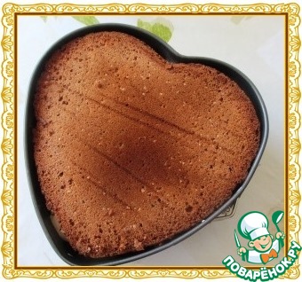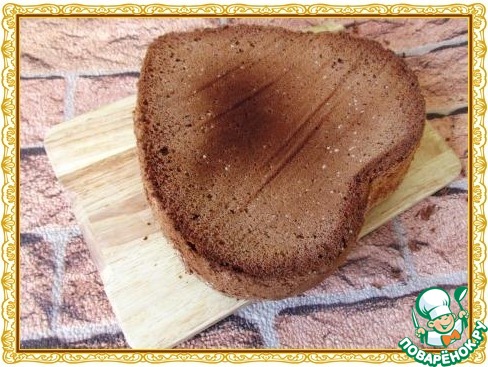 Готовность проверяем либо сухой лучинкой, - она должна выйти из центра коржа сухой и чистой, либо нажатием пальцем в центр коржа, - корж должен быть плотным. Бисквит оставляем остывать в форме минут 20, потом аккуратно вынимаем корж и полностью охлаждаем. -