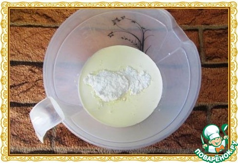 Готовим крем. В холодные жирные сливки (250 мл) добавляем сахарную пудру. -