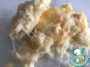 А это кусочек, который отделен для пробы. Как по мне, так тянущийся горячий сыр выглядит аппетитно. Если и вы того же мнения, то - угощайтесь!