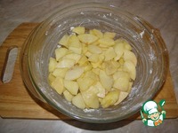 Яблоки выложить в форму для запекания ( я смазываю форму маслом и чуть присыпаю мукой) |