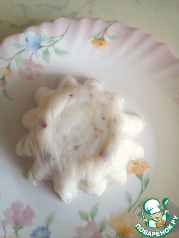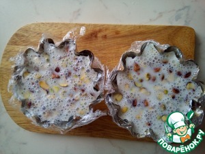 • Смесь хорошо перемешиваем и выливаем в форму для застывания. Я взяла маленькие формы для кексов. Форму выстелить пленкой.