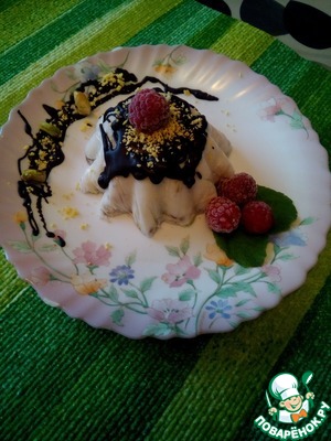 • Топим шоколад или в микроволновке или на водяной бане. Остужаем до комнатной температуры и выливаем на десерт. Украшаем.