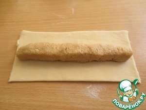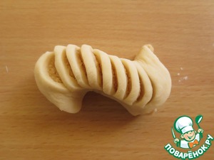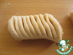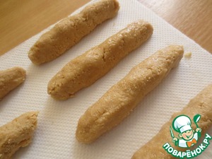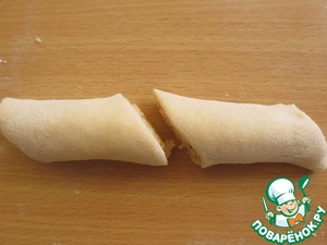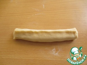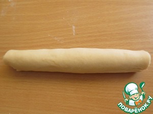 Из массы сформировать колбаски длиной 20-25 см, диаметром 1-1,5 см. Накрыть салфеткой и приступить к приготовлению теста.