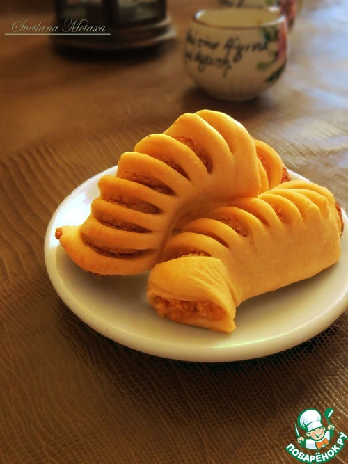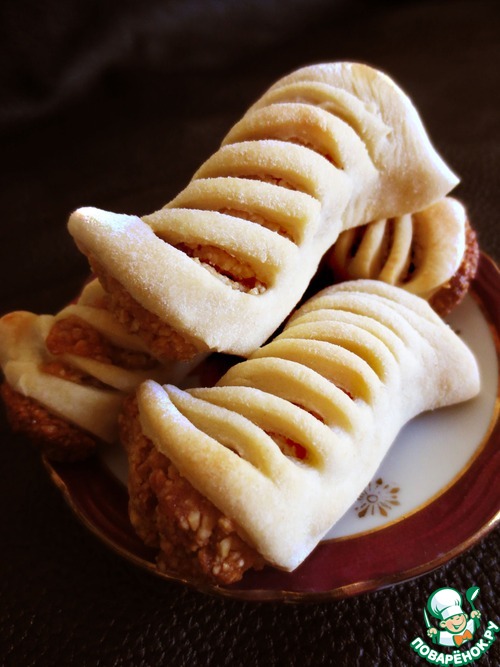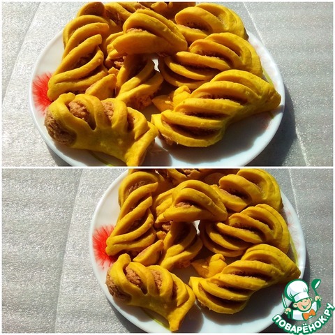 Прекрасное, не приторное печенье, которое готовится очень легко и быстро. В качестве начинки можно использовать любые орехи, густой джем и так далее. Уверена, многих из Вас порадует вкус и внешний вид печенья! Необычно, вкусно и легко!