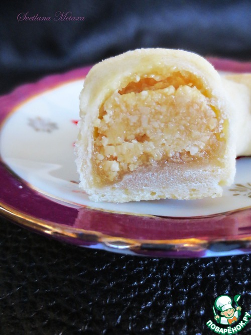 Но теперь, позвольте в качестве дискуссии. Порыла в инете варианты этих печенек. У всех рецепт примерно одинаков. Разница только в граммах. А не кажется ли Вам что классическое песочное тесто пошло бы к такой нежной рассыпчатой начинке больше? А? Ну вот на мой вкус немного пресновато. Прям просится песочное-песочное тесто. По крайней мере я таки попробую испечь с другим тестом. Постараюсь не забыть отписаться