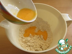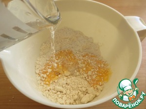 Далее взбить яйцо и добавить в мучную смесь ( можно яйцо смешать с водой и добавить в мучную смесь)