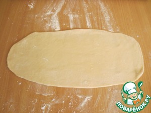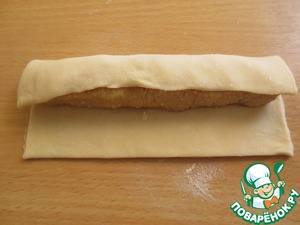 Переворачиваем швом вниз и как-бы немного вытягивая в длину, раскатываем рулет