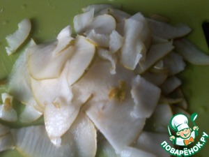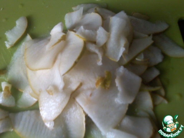Грушу, по возможности, тонко нарезать кусочками