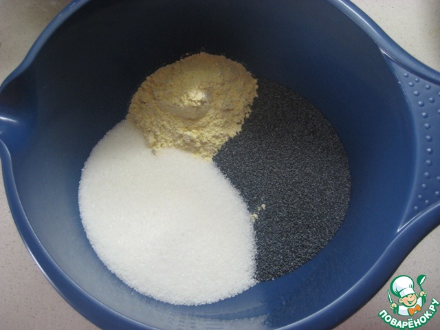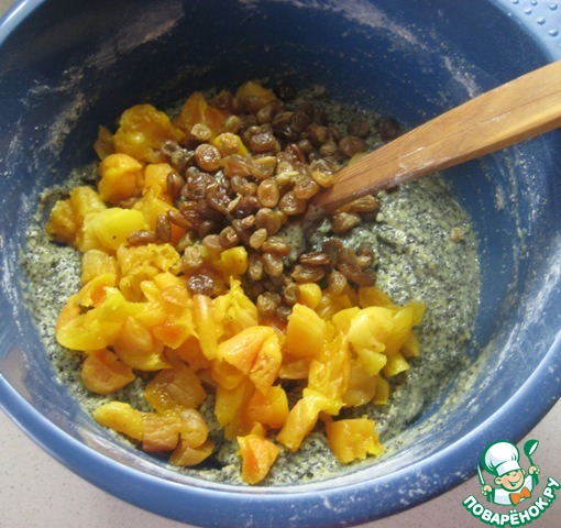 Рецепт «Кукурузный кекс с маком и курагой»: