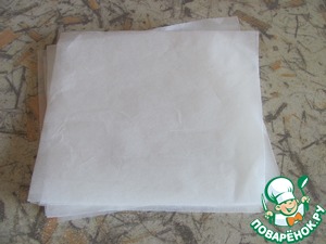 Бумагу для выпечки нарезать квадратами примерно 10*10