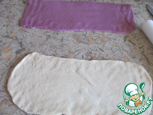 Каждый вид теста разделить пополам. Из каждой части раскатать пласт примерно 30*12
