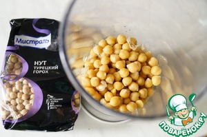 Нут замочить на ночь в воде. Затем воду слить, выложить нут в кастрюлю, залить водой в соотношении 1:5 и варить около 1 часа, до готовности. Готовый нут остудить.