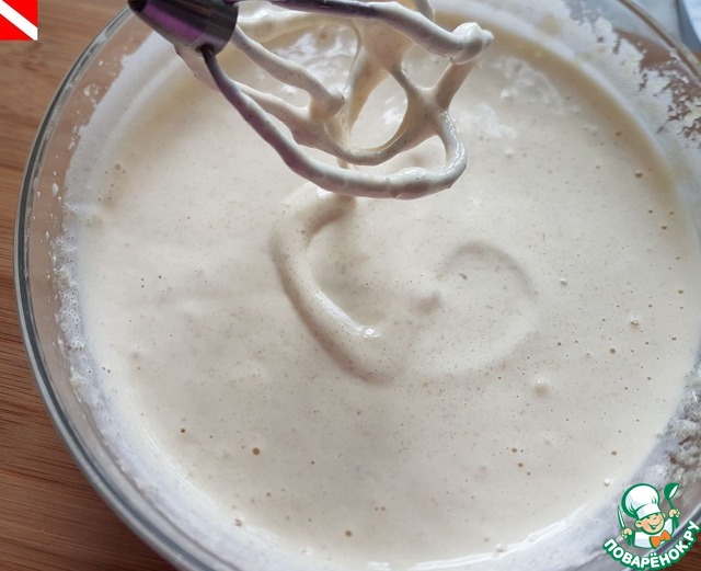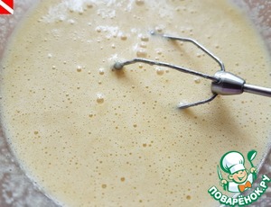 Снять смесь с бани, взбивать миксером до плотности - т. е. при стекании смесь должна оставлять легкий след, котрый исчезает не сразу. Взбивать достаточно долго - минут 15-20 (зависит от мощности миксера).