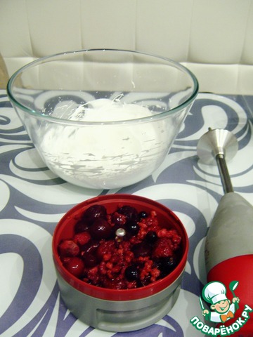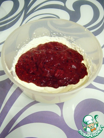 Соединяем взбитые сливки и ягодное пюре. Перемешиваем.